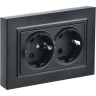 Розетка 2-местная с заземлением без защитных шторок IEK BRITE 16А в сборе РС12-3-БрЧ черный - BR-R21-16-K02-F