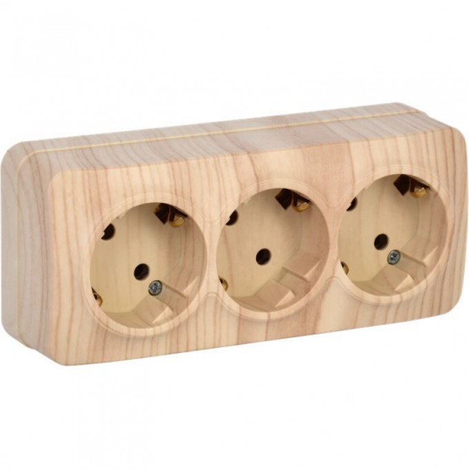 Розетка трехместная для открытой установки РС23-3-ХС с заземлением 16А IEK GLORY сосна - ERH31-K34-16