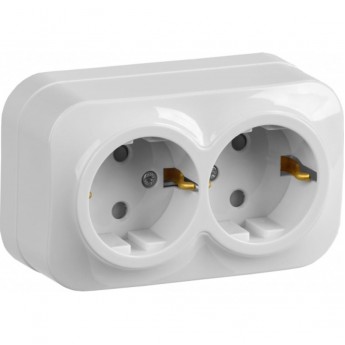 Розетка двухместная для открытой установки IEK GLORY РС22-2-ХБ без заземления 10А белый - ERH20-K01-10